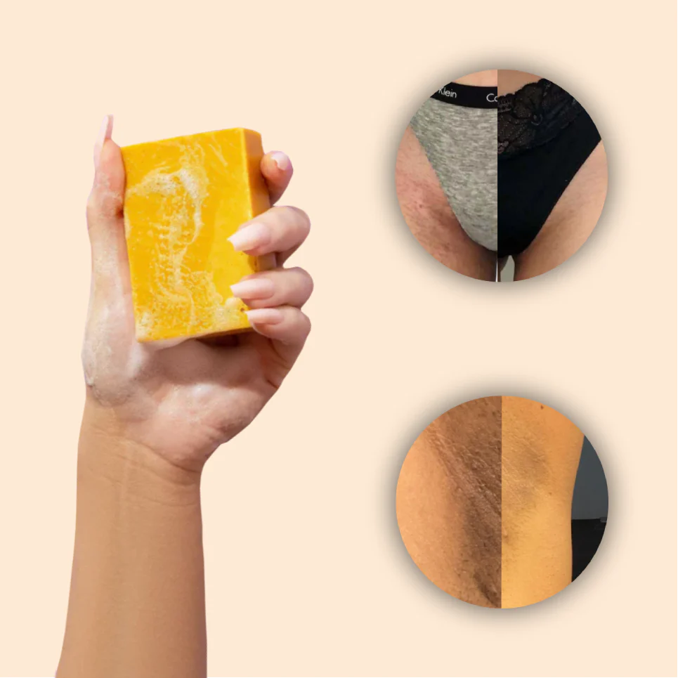 Nous avons conçu notre savon au curcuma pour qu'il soit adapté à toutes les parties du corps, y compris la zone du bikini, les collants, les aisselles et les jambes.
