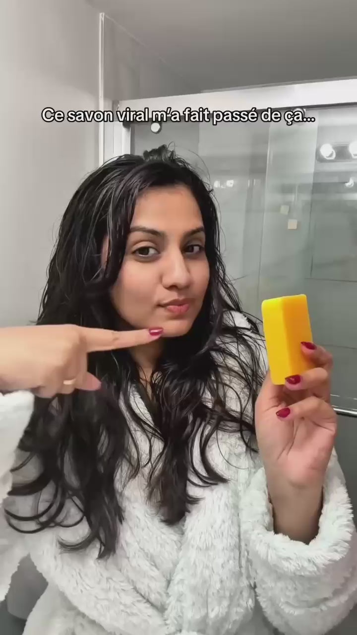 Frottez simplement le savon sur votre peau pendant 5 à 10 minutes et profitez d'une peau lisse, brillante et sans acné !